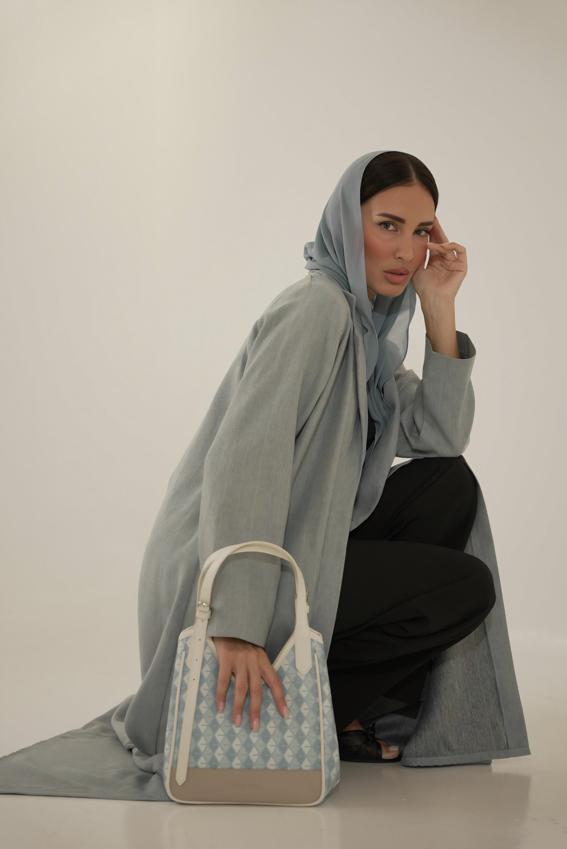 A soft, dune-toned abaya designed with a sleek, tailored silhouette and clean lapel collar for a modern, minimal look. The light beige fabric features a gentle texture and graceful drape, making it an effortless staple for both casual days and elegant evenings. Paired with a matching sheila, this abaya blends simplicity with sophistication in every detail.