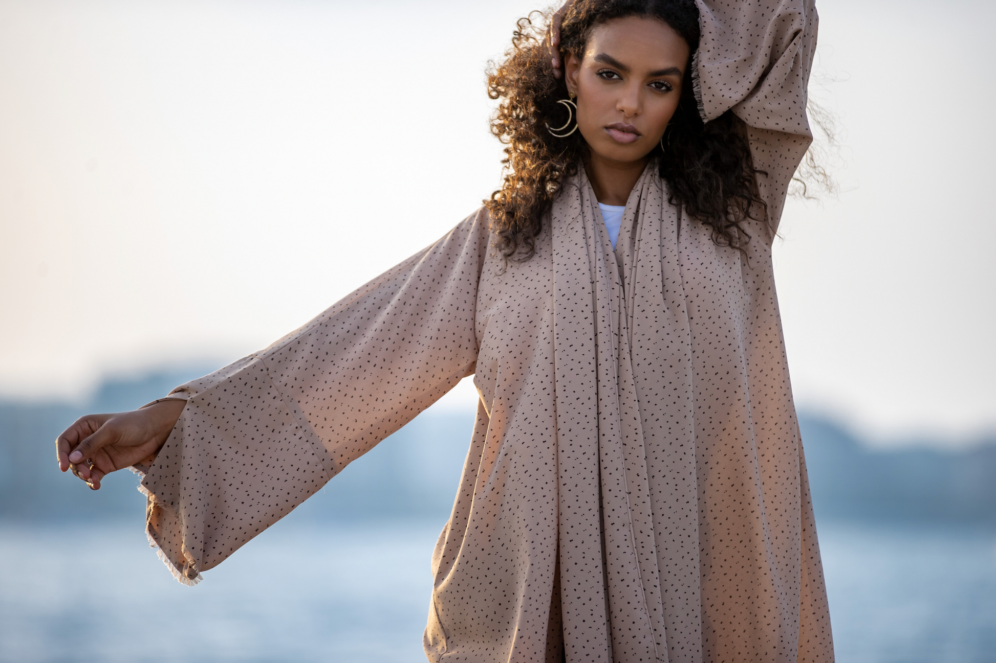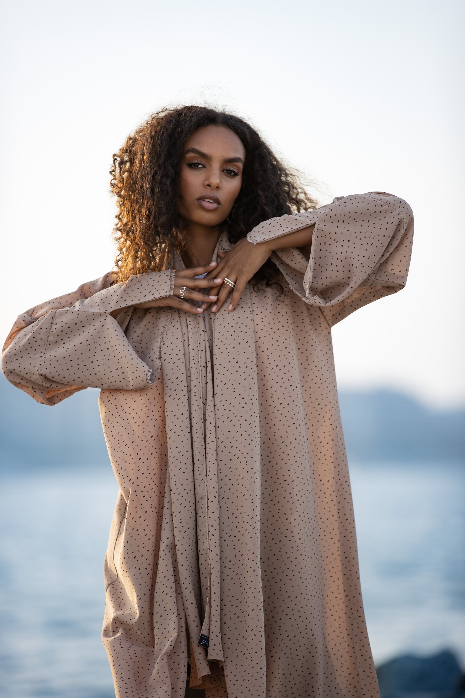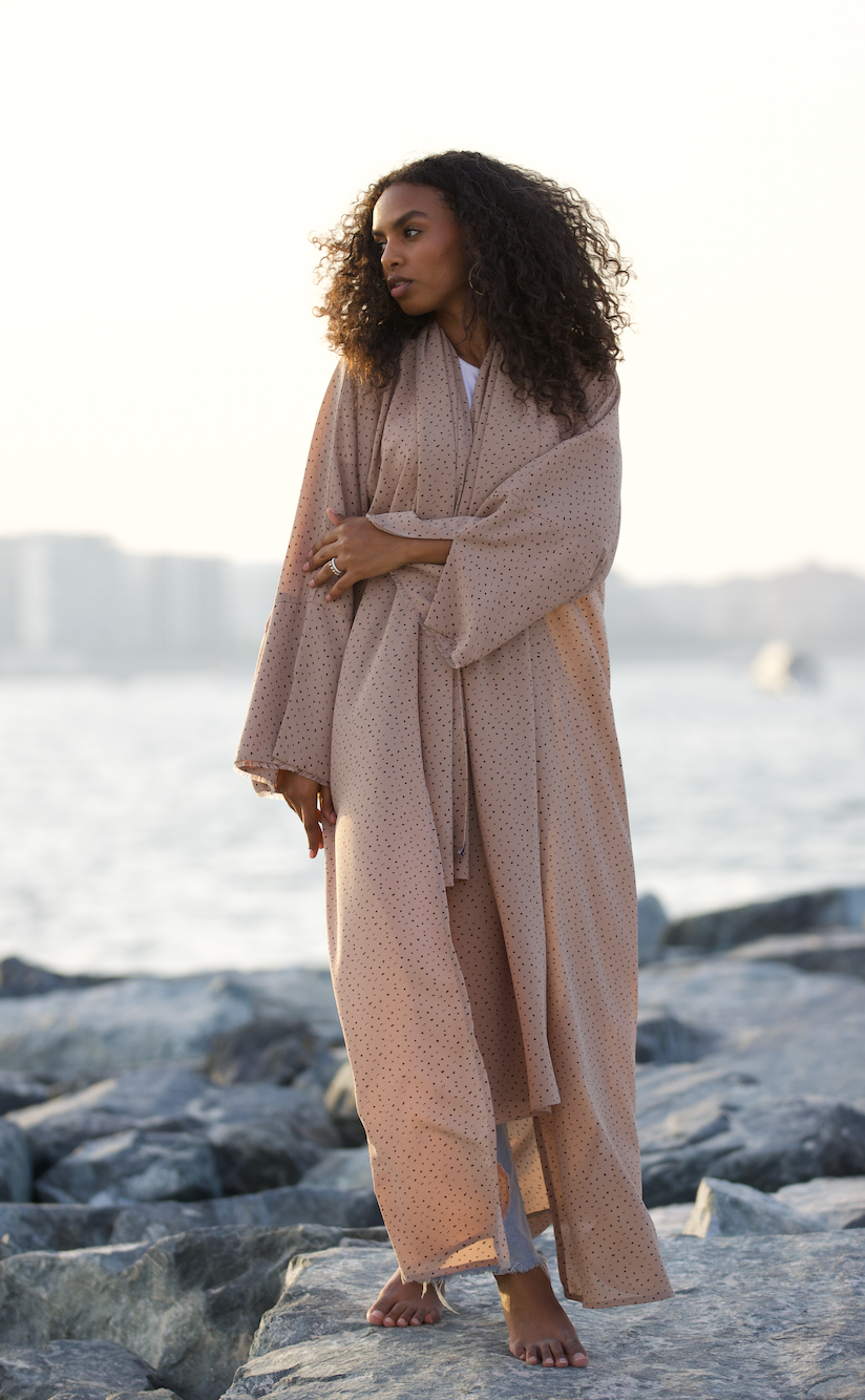 Elevate your wardrobe with this sophisticated straight-cut abaya, designed with statement oversized sleeves for a modern silhouette. Crafted from lightweight and breathable printed crepe, it drapes beautifully while ensuring all-day comfort. The look is completed with a matching sheila in the same elegant print, creating a seamlessly refined ensemble perfect for both casual and formal occasions.